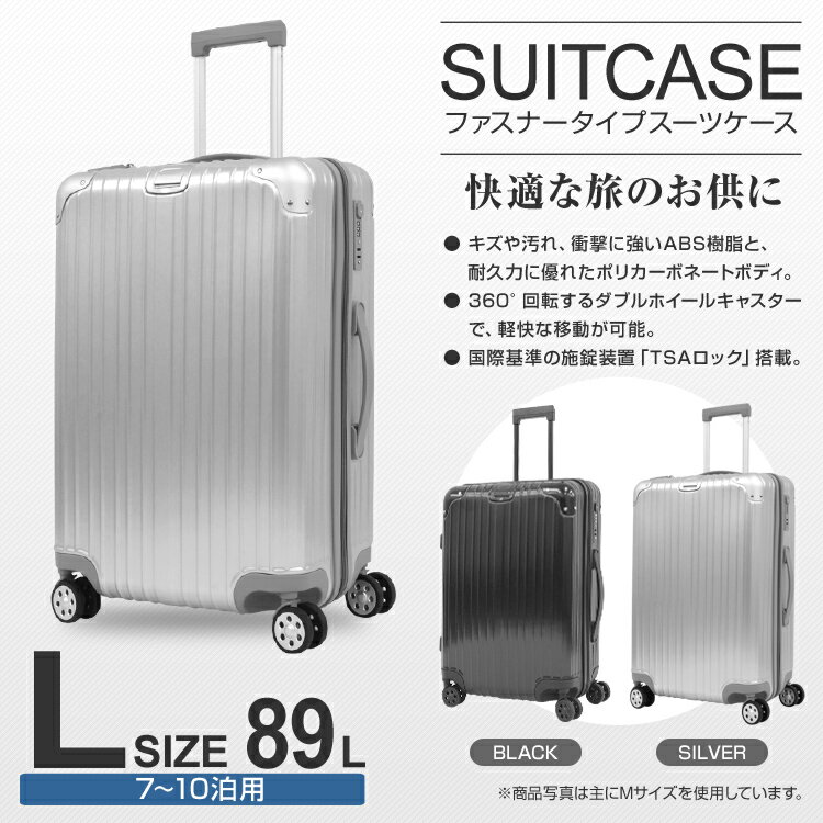 長期旅行などにぴったりな89Lの大容量スーツケースです!! キズや汚れ、衝撃に強いABS樹脂と、耐久力に優れたポリカーボネートボディを採用。