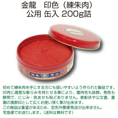【サプライ】【練朱肉】丸山工業 金龍印色 公用 缶入り 200g KB-2 【店頭受取対応商品】【YOUNG zone】【HLS_DU】 長持ち 表彰状 公文書 公用書類 契約書 書画 落款 証券 金融 不動産 カメ 魚 たい焼き 南瓜 和紙 半紙