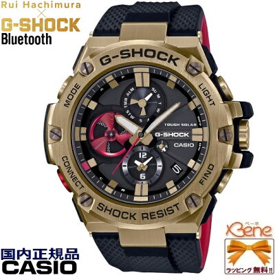 [限定!正規品/国内送料無料]八村塁シグネチャーモデル CASIO G-SHOCK MASTER OF G G-STEEL メンズタフソーラー Bluetooth®搭載 アナログクロノグラフ デュアルタイム 日付曜日表示 ブラック×ゴールド×レッド GST-B100RH-1AJR