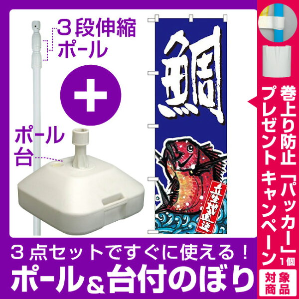 合わせて買いたい【3点セット】のぼりポール(竿)と立て台(16L)付ですぐに使えるのぼり旗 鯛 (SNB-1512) と一緒に購入されている商品のぼり旗 鯛 (SNB-1512) [プレゼント付]のぼり旗用 3段伸縮ポール(白) (846)角形16Lのぼり立台 (ポール台) (589)関連アイテム【セット商品】3m・3段伸縮のぼりポール(竿)付 のぼり旗 鯛 (SNB-1512) [プレゼント付]のぼり旗の絡まり防止用品 カラマナイ (2951)パッカー No.921 (921)【3点セット】のぼりポール(竿)と立て台(16L)付ですぐに使えるのぼり旗 鯛 (SNB-1512) ポールと立て台がセットですぐに使える3点セットのぼり旗! お寿司屋の販促にのぼり旗■のぼり旗の写真■付属のぼりポール情報■付属ポール台(のぼり台)情報商品情報■のぼり旗(のぼり/登り/幟)にポール(竿)とのぼり立て台(ポール台)がセットになった3点セットのぼり旗シリーズ。