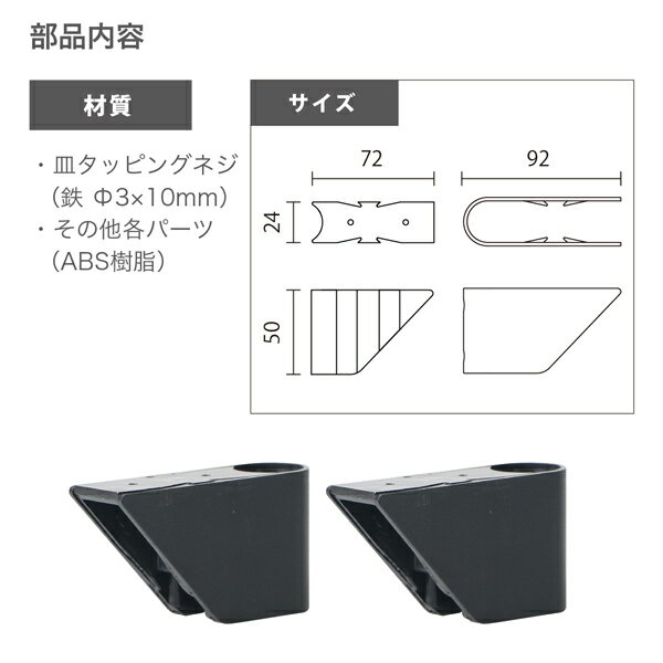 商品情報 材質 ・皿タッピングネジ( 鉄Φ3×10mm ) ・その他のパーツ(ABS 樹脂) 商品説明 こちらの商品は24mm木製丸棒を縦にセットした時に2本のつっぱり棒を1×4材などで繋げてシェルフにできます。