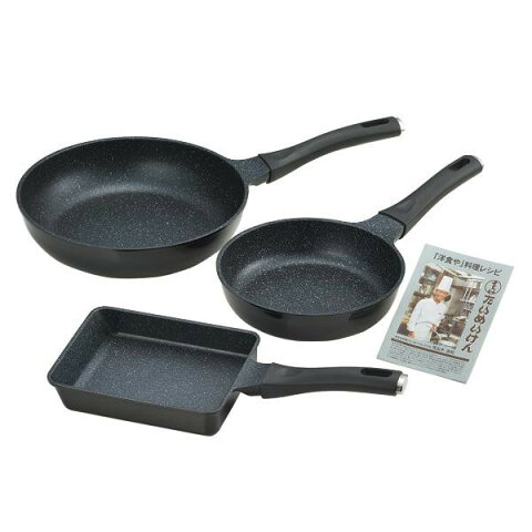 サイズフライパン20cm:約385×210×85mm、フライパン26cm:約447×270×95mm、玉子焼用:約367×162×66mm個装サイズ:28.0×45.5×12.0cm重量フライパン20cm:約510g、フライパン26cm:約705g、玉子焼用:約490g個装重量:2100g素材・材質本体:アルミニウム合金(内面:マーブルフッ素樹脂塗脂加工)、底部:ステンレス鋼、取っ手:フェノール樹脂仕様フライパン20cm:深さ約47mm、底厚3.0mmフライパン26cm:深さ約57mm、底厚3.0mm玉子焼用:深さ約32mm、底厚3.0mmセット内容玉子焼用・フライパン20cm・フライパン26cm:各1生産国中国広告文責株式会社ACTマーケティングTEL:06-6484-7849軽くて丈夫なダイキャスト製。