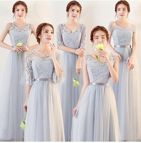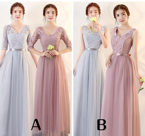 ブライズメイド ドレス マキシ丈 ロング お揃いドレス ゲストドレス フォーマル パーティーワンピース お呼ばれ TJ118Y 伸縮性有り シャンペン くすんだピンク マダムピンク グレー Aライン フレア 結婚式 パーティー