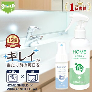 楽天ランキング1位獲得の大人気 超撥水コーティングスプレー HOME SHIELDと 鏡の曇り止め 親水コーティングスプレー MIRROR SHIELDがお得なセットになりました。