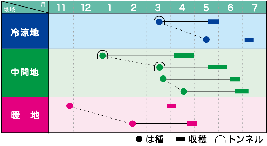 1.イオウ病抵抗性の晩抽性品種であり、低温伸長性の優れた春ダイコン。